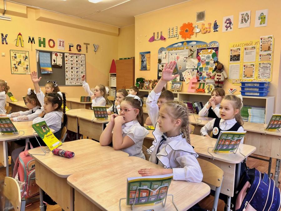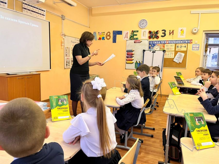 Ученики 1 «Д» класса прямо сейчас участвуют в интеллектуальной игре "По сказкам Братьев Гримм", которую подготовила наш библиотекарь - Наталья Владимировна! Это лишь начало насыщенного и важного дня для наших учеников.